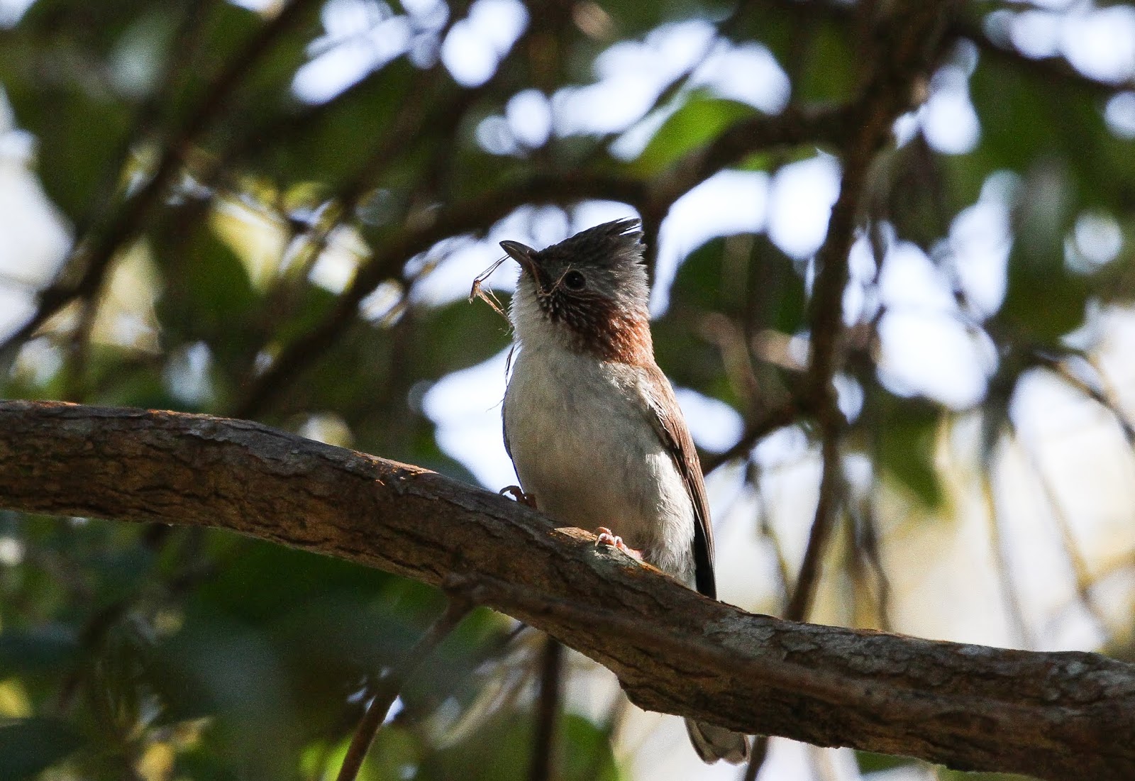 Around the restaurant building area a delightful group of Indochinese Yuhinas kept us amused as did a Red-flanked Bluetail and a small party of Olive-backed Pipits. The walk itself was also a nice way to spend our final morning - 2 Red-headed Trogons, Grey-chinned Minivet, several Puff-throated Babblers, Blyth's Shrike-babbler, White-bellied Epornis and a nice Ratchet-tailed Treepie that refused to come out into the open! Staring into the roadside woodland for a calling White-gorgetted Flycatcher eventually paid off with a brief perched view. In a memorable couple minute we scored with a Buff-chested Babbler and a stunning Golden Babbler (of which we went on to see 4). Other highlights included Dark-necked Tailorbird, another Red-flanked Bluetail, Mountain Fulvetta, Streaked Wren-babbler and Grey-crowned Tits. I also then got onto a leaf warbler that proved to be a Davison's Leaf-warbler